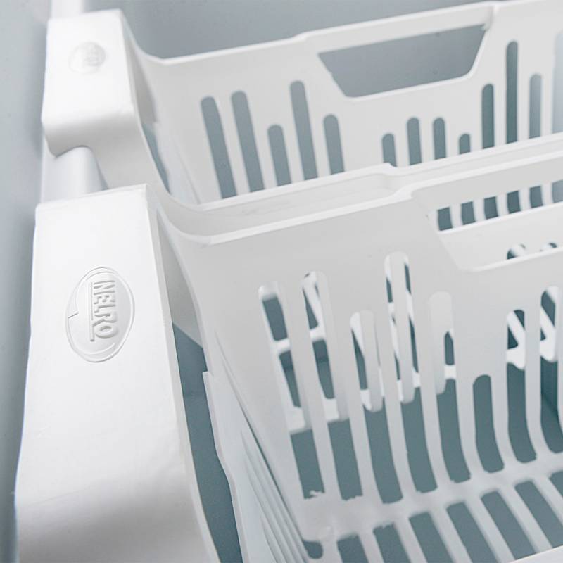 Nuevo tablero, Un Canasto, Ruedas Giratorias de alta resistencia, Interior en chapa pre pintada blanca, Desagote Frontal.