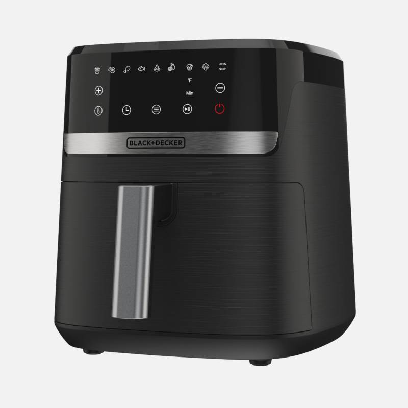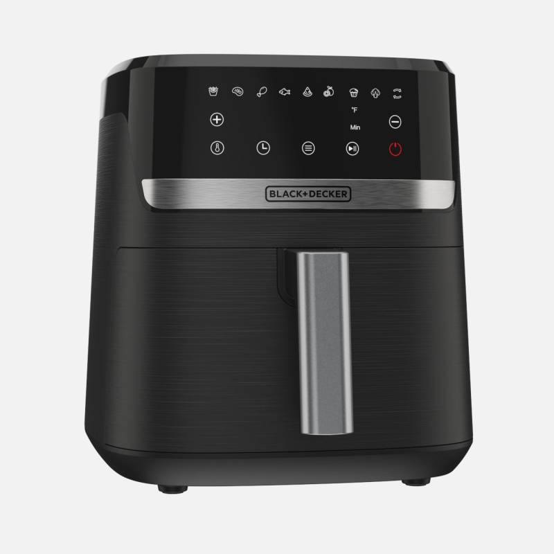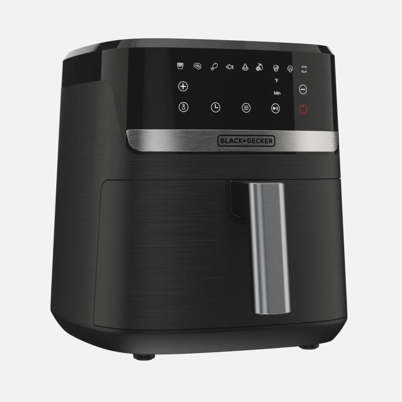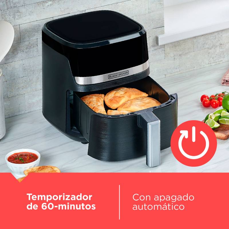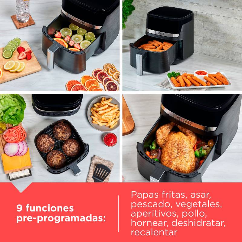 Lleva tus comidas a otro nivel con la Freidora de Aire Black+Decker PURIFRY?. La tecnología Airfry? ofrece resultados crujientes con menos aceite. Con 9 funciones preprogramadas, cocina fácilmente desde papas fritas hasta vegetales. La pantalla táctil digital y la notificación para agitar los alimentos garantizan una cocción perfecta. Ahorra energía y tiempo mientras disfrutas de un diseño elegante en acero inoxidable. Con capacidad de 5.2L, es ideal para toda la familia. ¡Renueva tu cocina con la PURIFRY? hoy mismo!