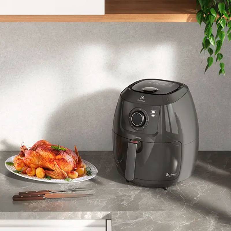 Prepará recetas sabrosas con la AirFryer Electrolux Efficient EAF50, con tecnología que ayuda a simplificar tu día a día en la cocina sin dejar de lado tu salud. Su panel digital AssistantTouch cuenta con 9 recetas preprogramadas para mayor comodidad en la preparación de platos populares como pollo y vegetales, con solo pulsar un botón.