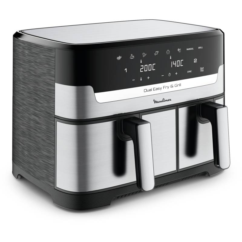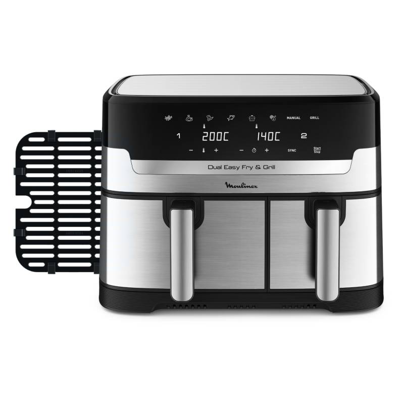 Freidora de Aire Dual Moulinex Gris Easy Fry & Grill Dual Inox EZ905D20
