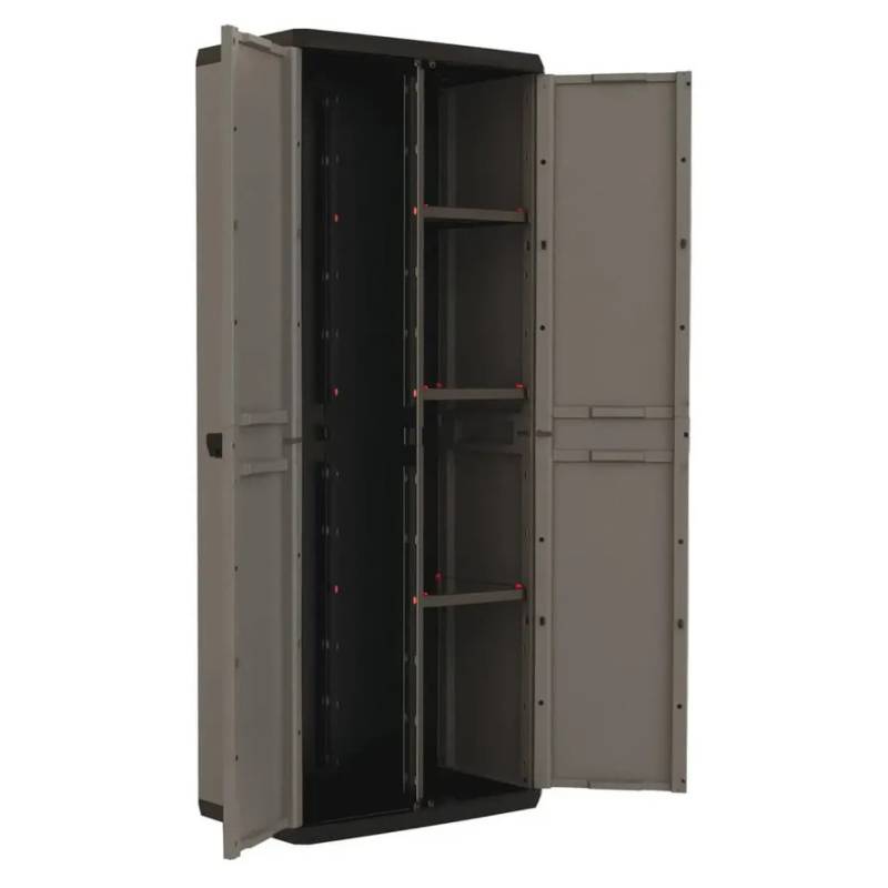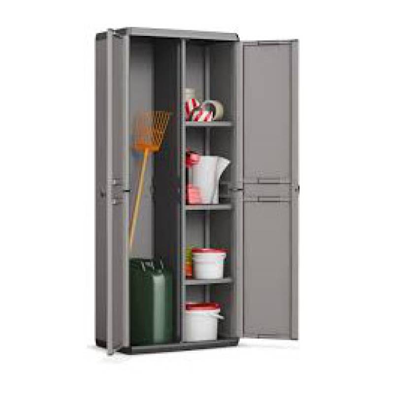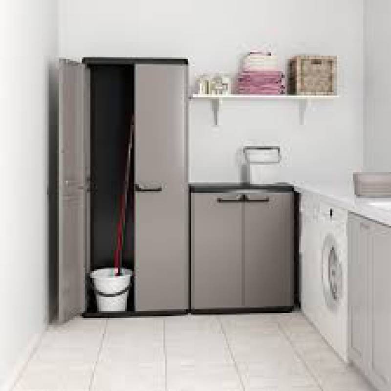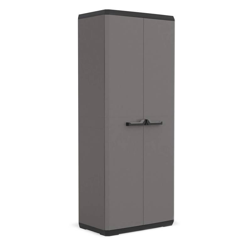 Con un diseño moderno en negro y gris, Piú ofrece total flexibilidad y se adapta perfectamente a cualquier lugar. El gabinete multipropósito cuenta con 3 estantes ajustables con una capacidad de 10 kg cada uno. Este producto es ideal para almacenar escobas y demas articulos del hogar debido a su amplio espacio. Las manijas suaves al tacto agregan comodidad y las puertas con cerradura brindan seguridad. Certificado TUV Sud GS confirmando que este artículo ha superado con écxito las pruebas específicas en materia de Seguridad y Calidad.