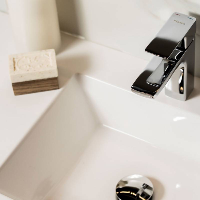 > Las griferías cuentan con un aireador con portaboquilla/oculta que permite el ingreso de aire al chorro de agua generando una sensación más placentera en su caudal y ahorrando hasta un 30% de agua.