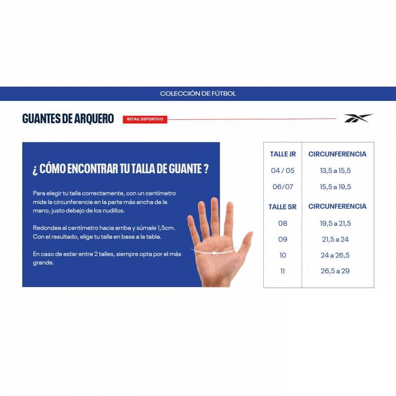 Para elegir la talla correcta, mide la circunferencia de tu palma justo por debajo de los nudillos, sin incluir el pulgar.