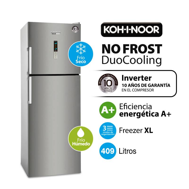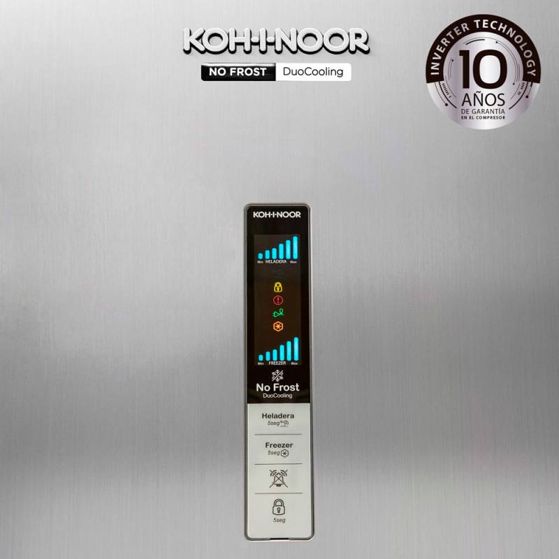 Heladera No Frost Kohinoor Inverter 409 Lts KHDA42DI/10 - Freezer no frost, heladera cíclica - Tecnología Inverter - Control digital en puerta - Freezer XL, 3 niveles de organización - Estantes de vidrio templado - Gas R600a - Medidas: Alt. 189; Ancho 67; Prof. 76 cm