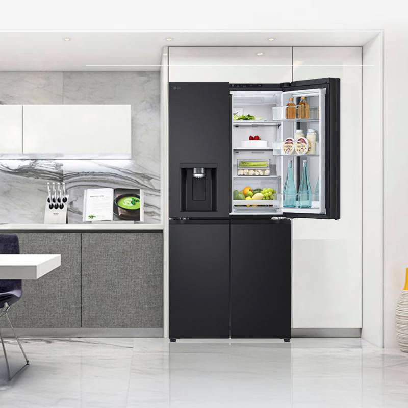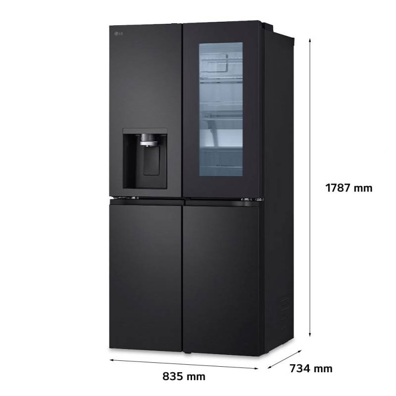 Heladera Side by Side GM57SXM de 427 litros, con innovador sistema InstaView Door-in-Door, que permite ver el interior con solo tocar el panel de vidrio, reduciendo la pérdida de frío y mejorando la eficiencia energética. Equipada con Smart Inverter Compressor, ofrece un funcionamiento silencioso, duradero y de bajo consumo.