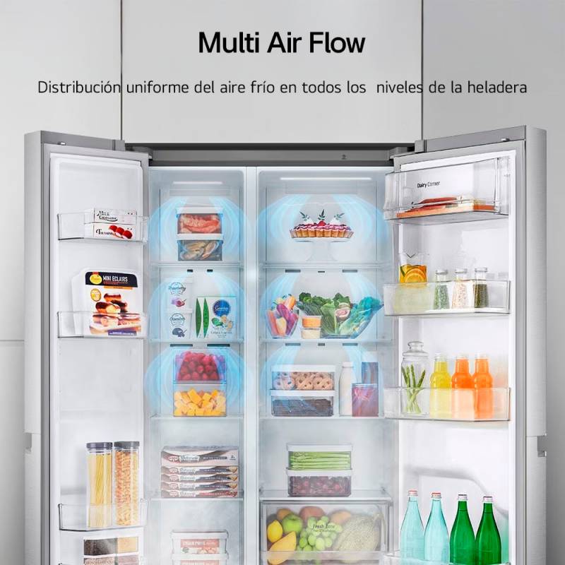 Heladera Multidoor GS66MPPT de 658 litros en color plateado, con Smart Inverter Compressor que garantiza un funcionamiento eficiente, silencioso y de bajo consumo. Su amplio espacio interior y diseño multidoor permiten una organización práctica y cómoda de los alimentos.