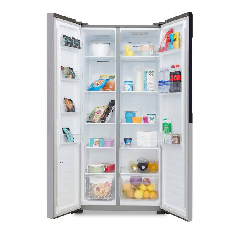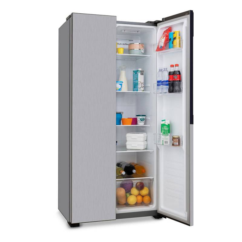 La Heladera Side by Side Slim Inox de 428 litros combina estilo, practicidad y tecnología para conservar tus alimentos en las mejores condiciones. Con una capacidad neta de 428 LTS, ofrece el espacio necesario para organizar cómodamente todo tipo de productos, bebidas y preparaciones.