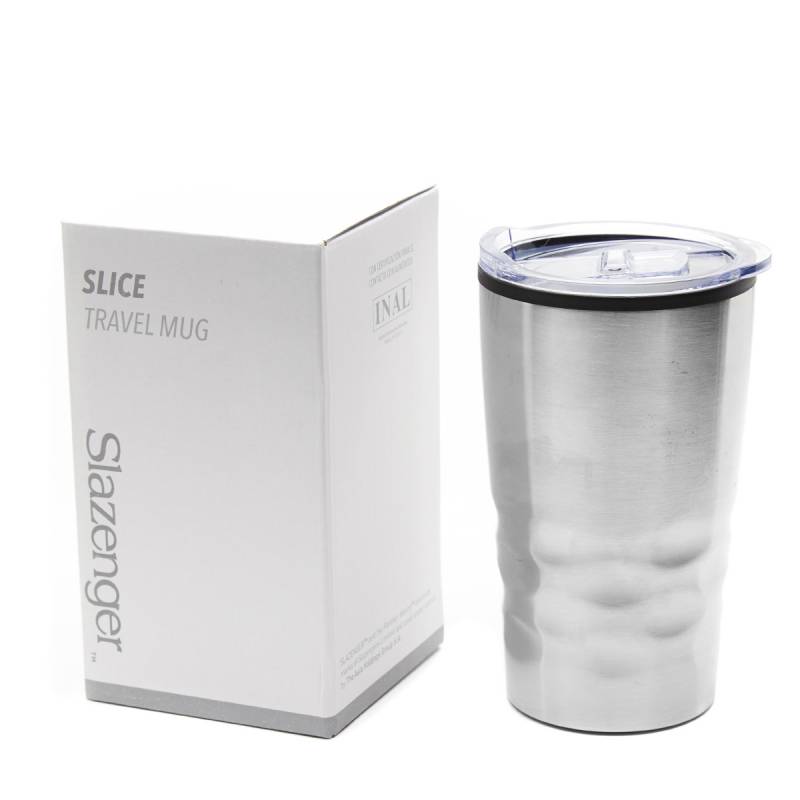 Jarro térmico realizado en acero inoxidable y con tapa cristal clear. Producto aprobado por el I.N.A.L. para el contacto con alimentos. Medidas: 15,19 cm x Ø inferior 7,06 cm x Ø superior 9,2 cm. Capacidad: 400 ml. Producto libre de BPA. Slazenger