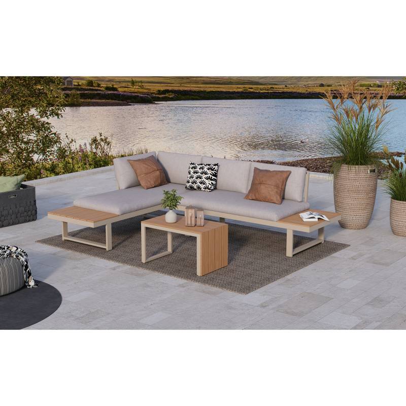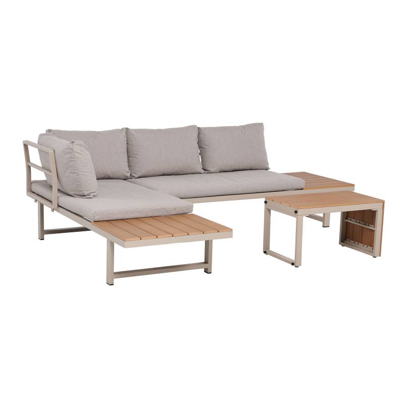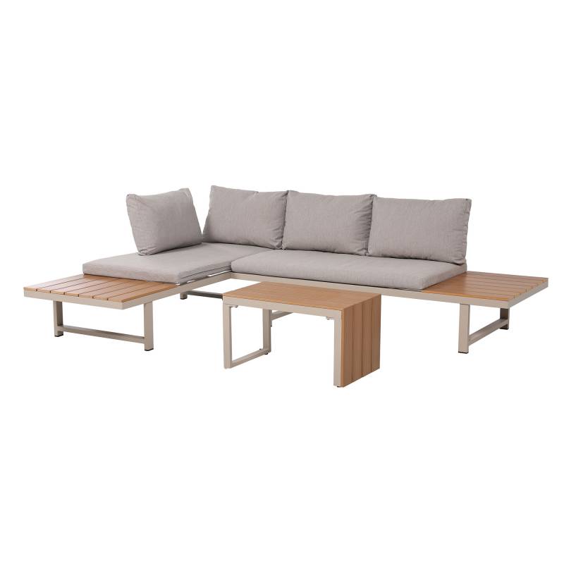 Juego de Sofá Rinconero de Aluminio – 3 Piezas con mesa y cojines