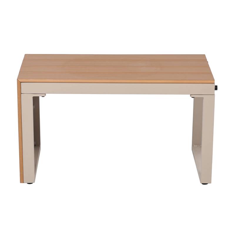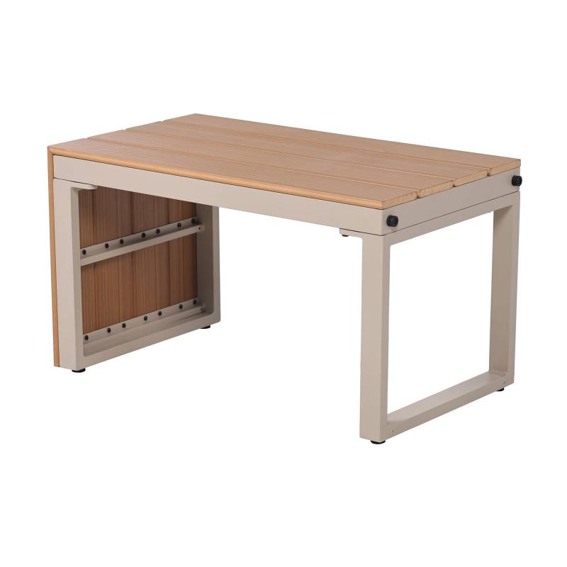 - Cubierta de mesa en polywood, de apariencia similar a la madera, resistente al clima y de bajo mantenimiento