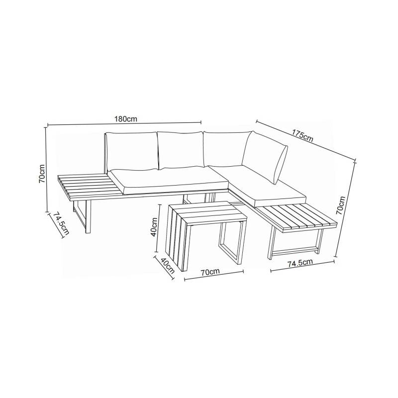 Elegancia, comodidad y resistencia para tu espacio exterior. Este moderno set rinconero de aluminio es ideal para balcones amplios, terrazas o patios, ofreciendo una zona de relax con estilo minimalista y materiales duraderos.
