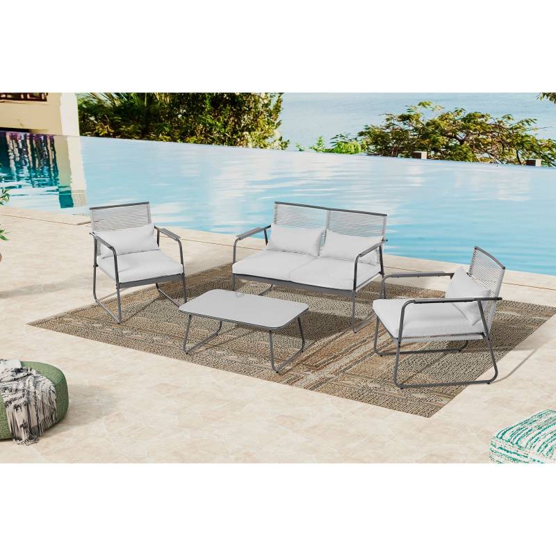 Set de Sofá de Acero 4 Piezas – Moderno, resistente y perfecto para exteriores