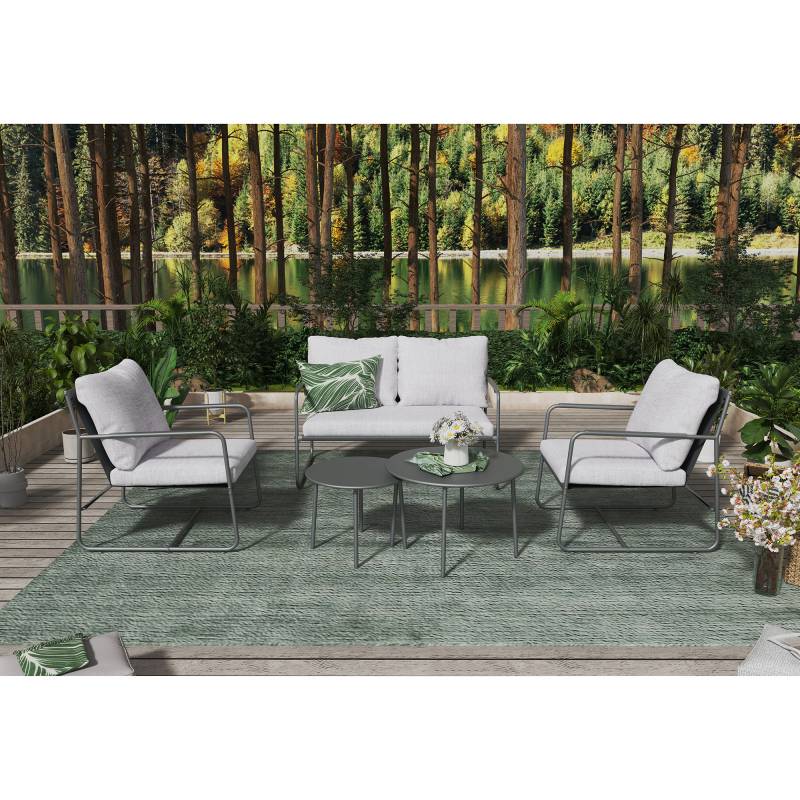 Disfruta de la combinación perfecta entre estilo, comodidad y durabilidad con este set de sofá de acero de 5 piezas, ideal para terrazas, jardines y cualquier espacio exterior. Su diseño KD (knock down) permite un armado sencillo y un transporte más práctico, manteniendo una estructura firme y resistente.