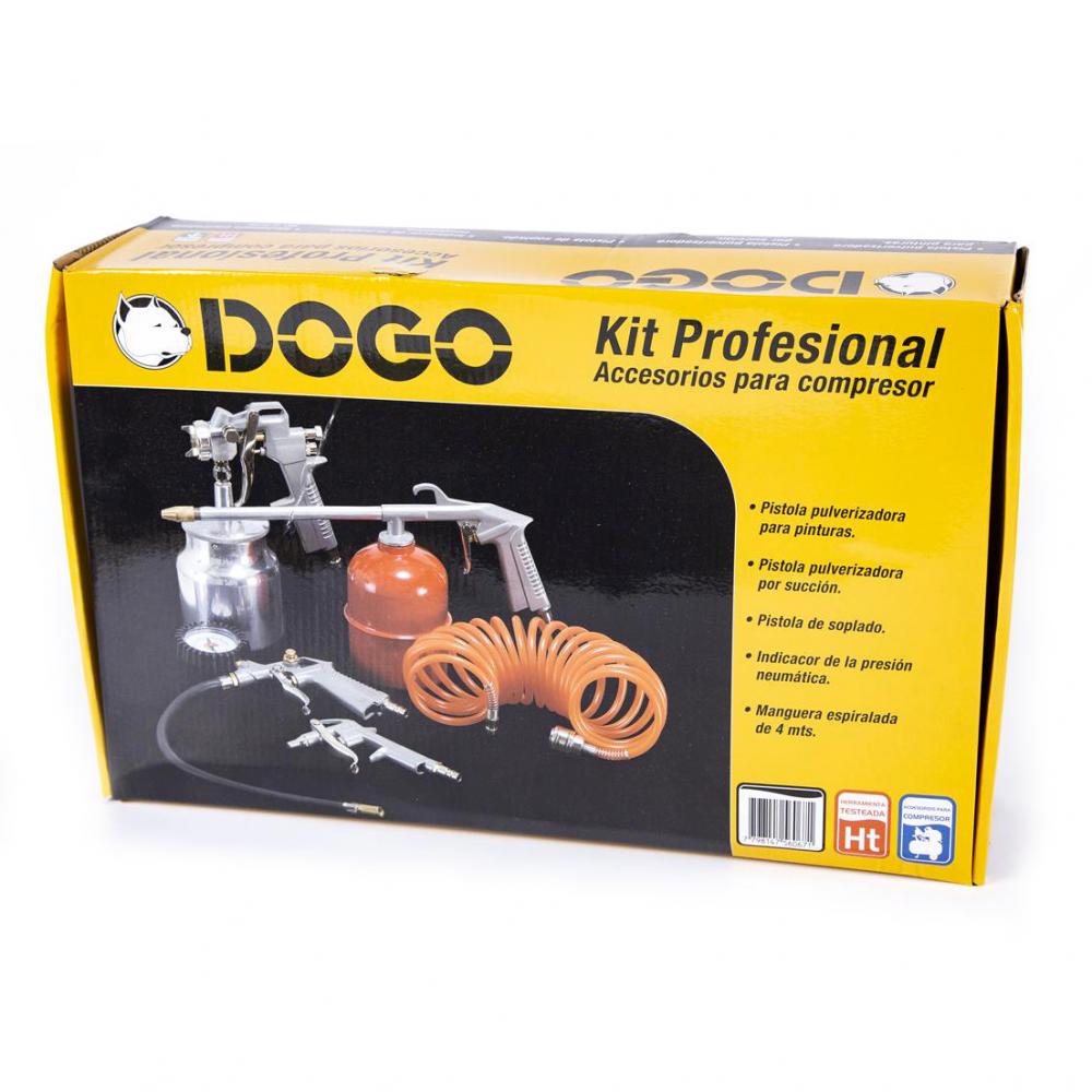 Kit de 5 piezas: Pistola soplete, pistola succión, inflador con manómetro, pistola pulverizadora, manguera de 5 metros