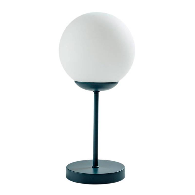 Lámpara De Mesa De Hierro Y Vidrio Opal Pie Redondo-Azul Oscuro