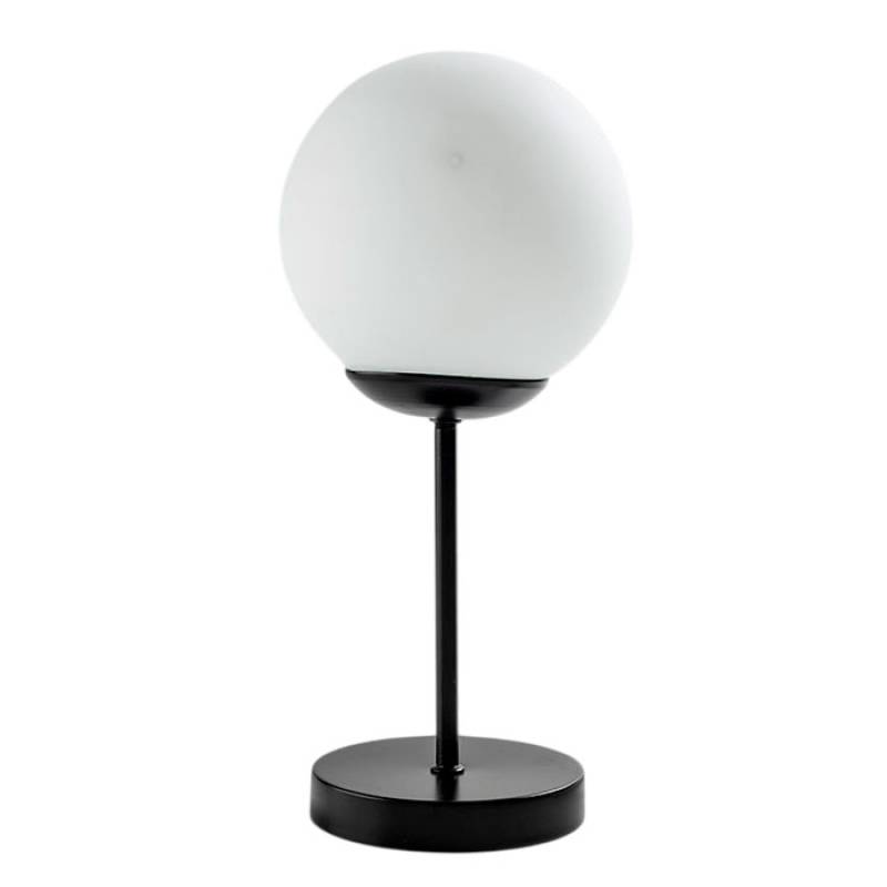 Lámpara De Mesa De Hierro Y Vidrio Opal Pie Redondo-Negro