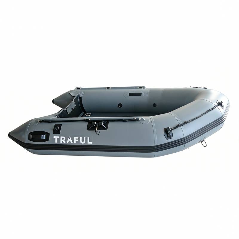 Esta lancha inflable gris TRAFUL es súper versátil: perfecta para relajarte en el agua o para usarla de forma práctica. Está construida de forma robusta (costuras reforzadas, anillas D resistentes para sujetar equipo) y es segura (diseño multicompartimento para mayor tranquilidad). Viene en distintos tamaños (desde compacta hasta 14’1”). Se puede inflar/desinflar fácilmente para salidas casuales (pesca, paseos) y permite instalar un motor (hasta 50 HP) si necesitás recorrer más distancia. Una opción todo-en-uno para cualquier plan en el agua.