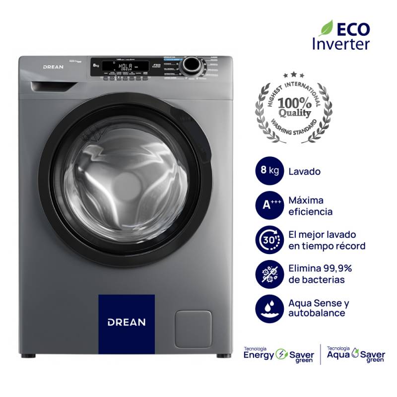 Lavarropas de carga frontal 8 kg con Motor Inverter y 1.400 rpm. Cuenta con eficiencia A+++, tecnología AquaSense y sistema Autobalance (AI). Color Silver.