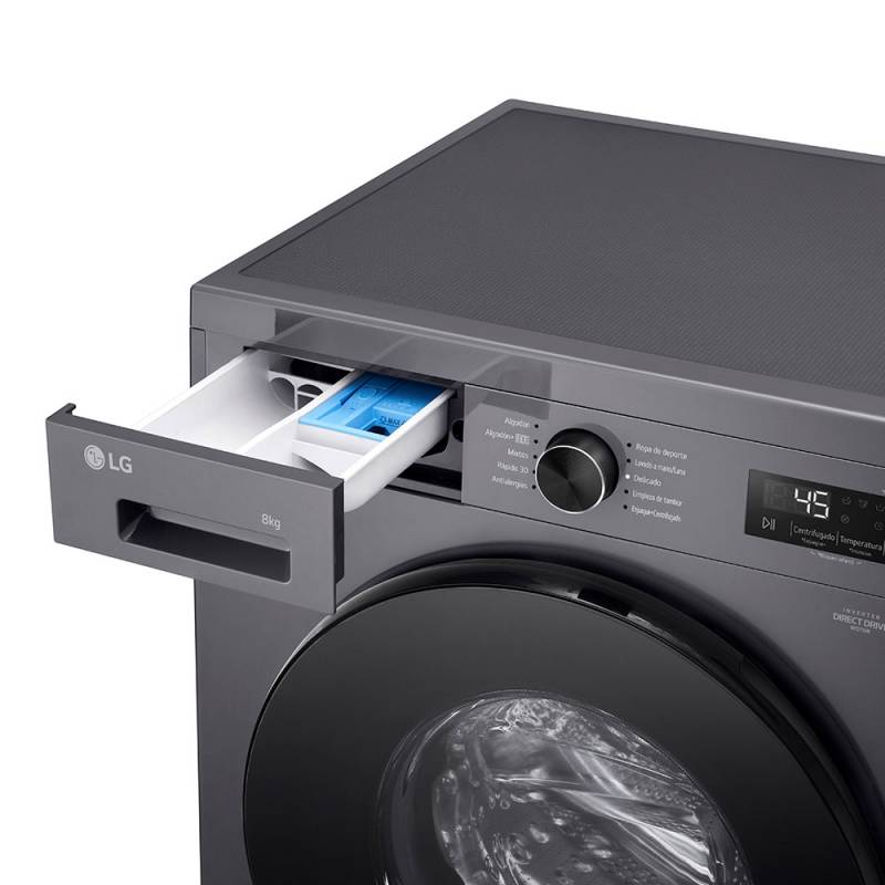 Lavarropas carga frontal 8 KG │ Negro │ Inverter Direct Drive │Steam Steam Lavado a vapor 6 Motion DD: 6 movimientos de lavado Motor Direct Drive: 10 años de garantía