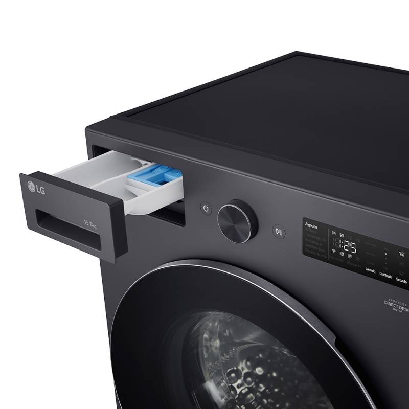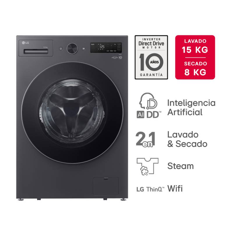 Lavasecarropas carga frontal 15/8 KG │ Gris mate │ Inverter Direct Drive │ AI DD │ ThinQ AI DD - Inteligencia Artificial Steam ThinQ TurboWash Motor inverter Direct Drive Durabilidad/Higiene/Diseño