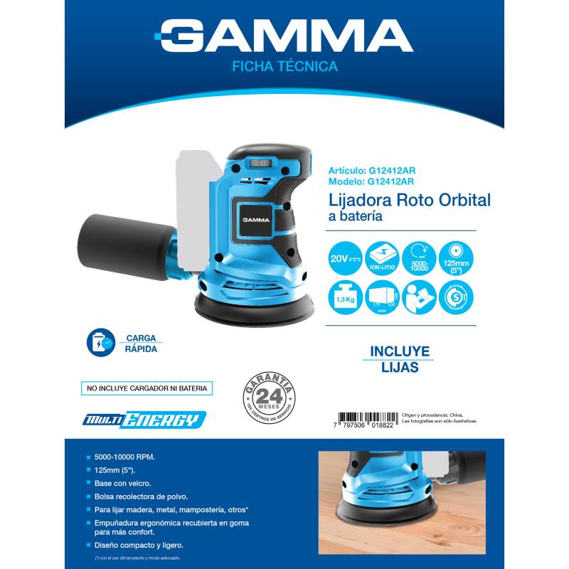 Lijadora Roto Orbital a Batería - G12412AR