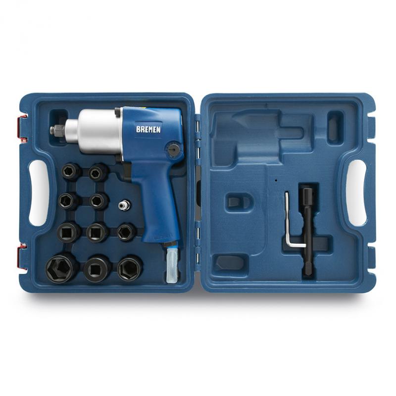 Llave Pistola de Impacto Neumática Bremen 1/2 Industrial 760NM KIT 15 Piezas.