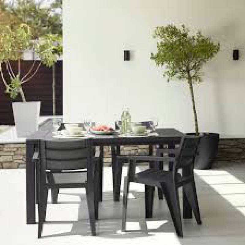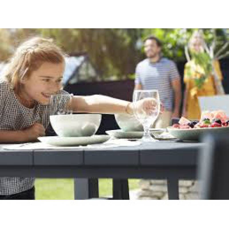 Su forma sencilla y versátil es la principal ventaja de la funcional mesa de comedor Julie. Gracias a ello, es posible adaptarla a cualquier estilo, tanto clásico como moderno. Su amplio tablero es ideal para grandes cenas familiares o reuniones con amigos en el jardín. Es muy fácil de montar y limpiar. Resistente a la intemperie y a los rayos UV.