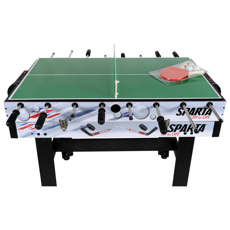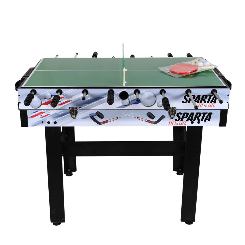 Incluye: Paletas y pelota de ping pong, pads y tejo para Hockey, pelota para metegol