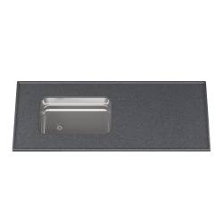 Mesada de Cocina de Mármol Sintético, sin zócalo, bacha de acero inoxidable.