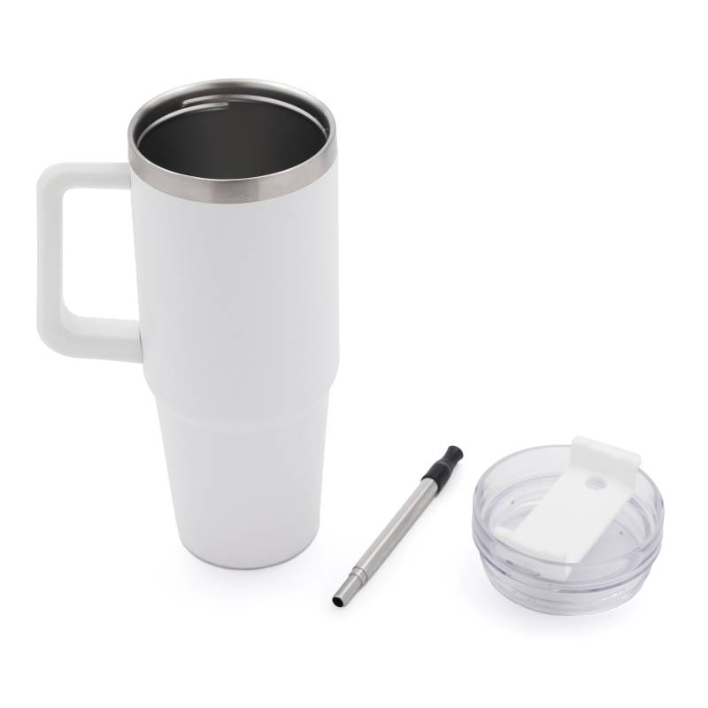 Jarro de doble pared con capacidad 887ml. Está confeccionado en acero inoxidable 304 en su interior, y su exterior en acero inoxidable esmaltado. Tapa realizada en ABS y PP, con sorbete incluido de silicona y acero inoxidable. Ideal para uso diario.