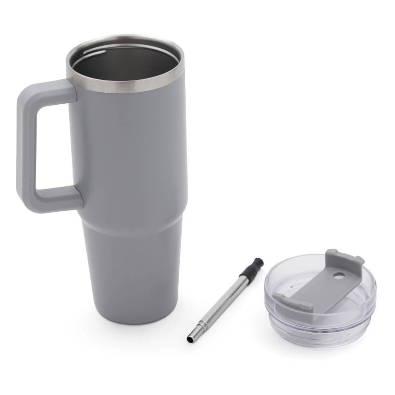 Jarro de doble pared con capacidad 887ml. Está confeccionado en acero inoxidable 304 en su interior, y su exterior en acero inoxidable esmaltado. Tapa realizada en ABS y PP, con sorbete incluido de silicona y acero inoxidable. Ideal para uso diario.