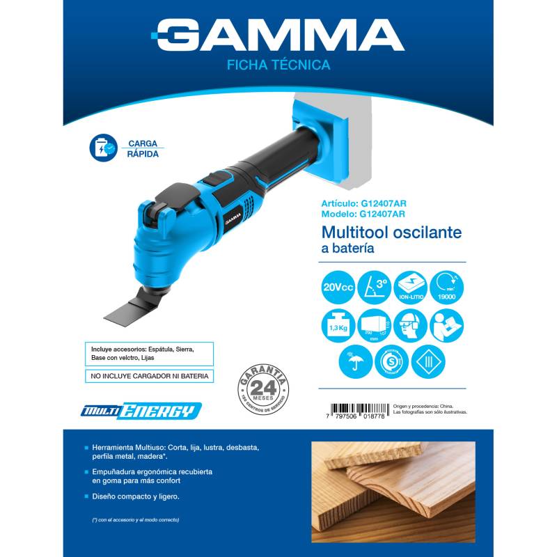 La Multitool oscilante de Gamma es una herramienta versátil que forma parte de la línea Multi-Energy. Este sistema exclusivo permite utilizar una misma batería en toda la gama de equipos, optimizando costos y beneficios.
