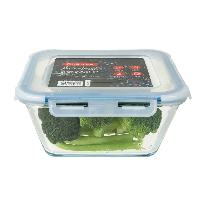 Hermético cuadrado vidrio 2,4 litros curve apto freezer y microondas