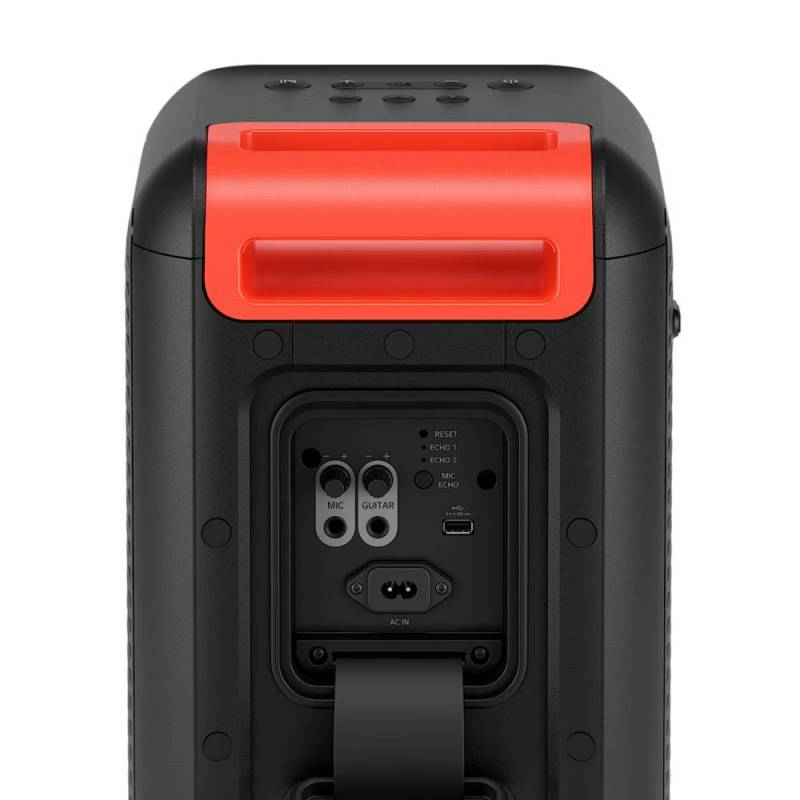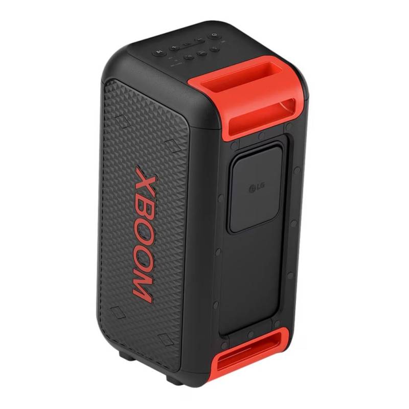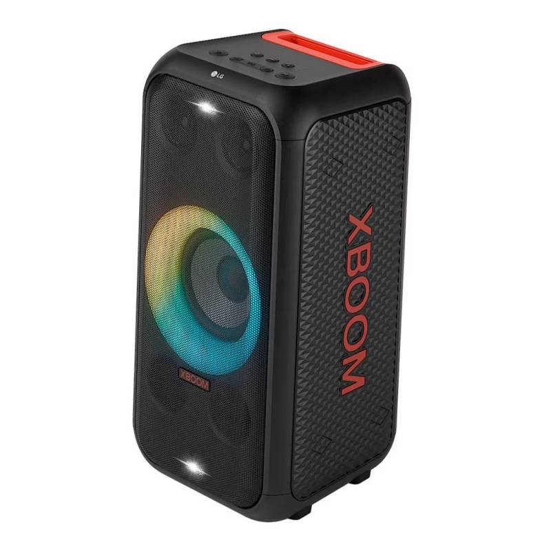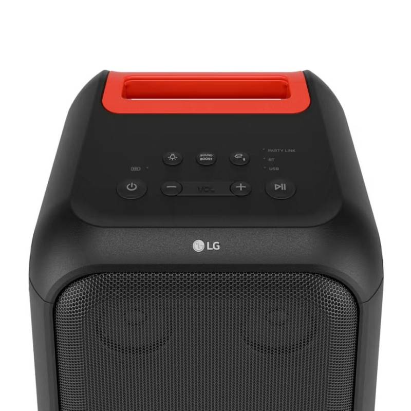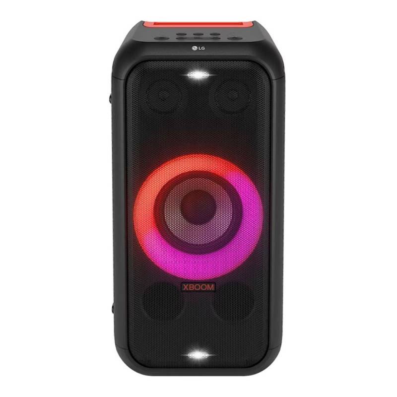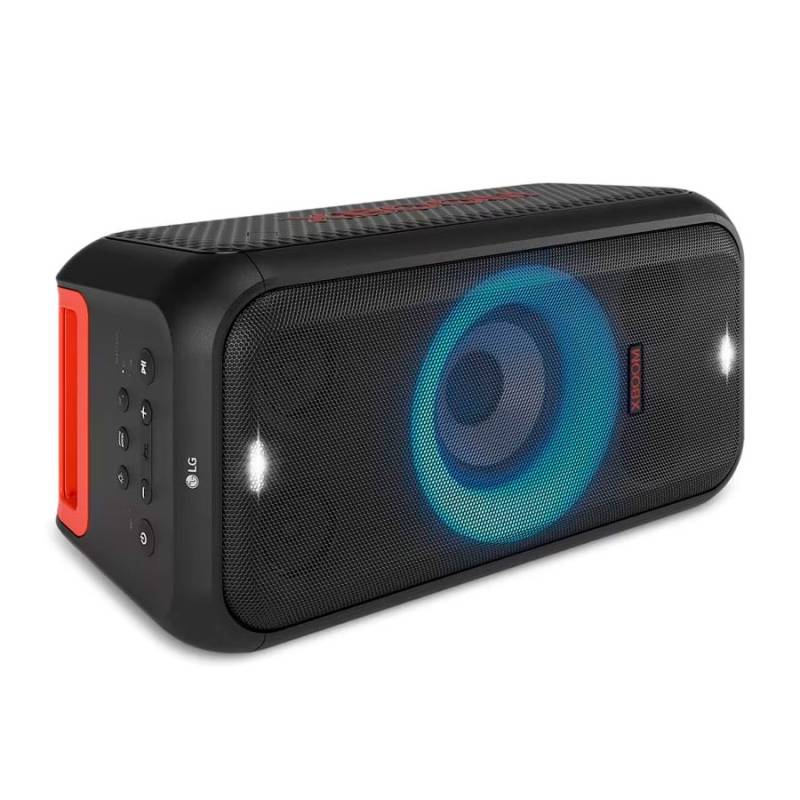Parlante BT LG XL5S con 200W de potencia, Woofer de 6,5" y 2.1Ch, Anillo luminoso multicolor, hasta 12hs duración de batería, IPX4 resistente al polvo y salpicaduras, Entrada de micrófono y guitarra.