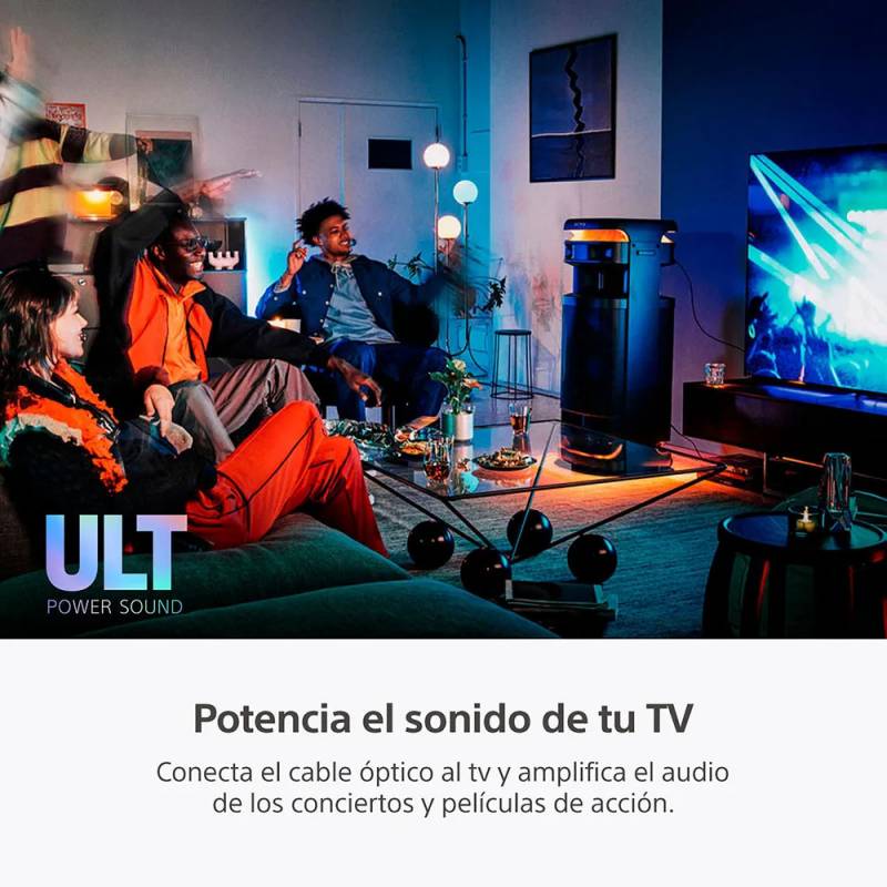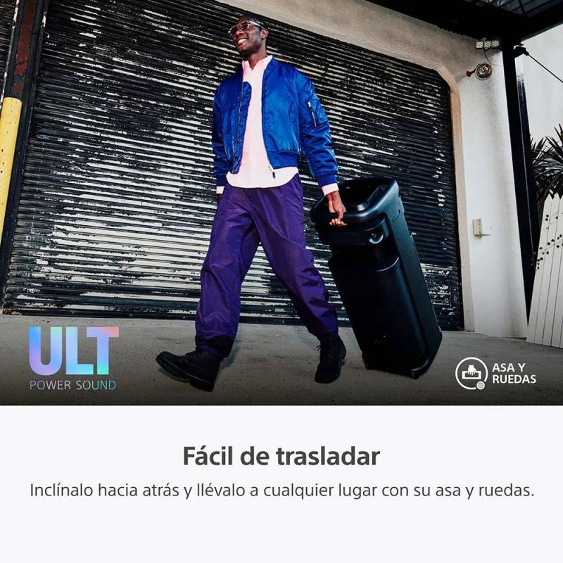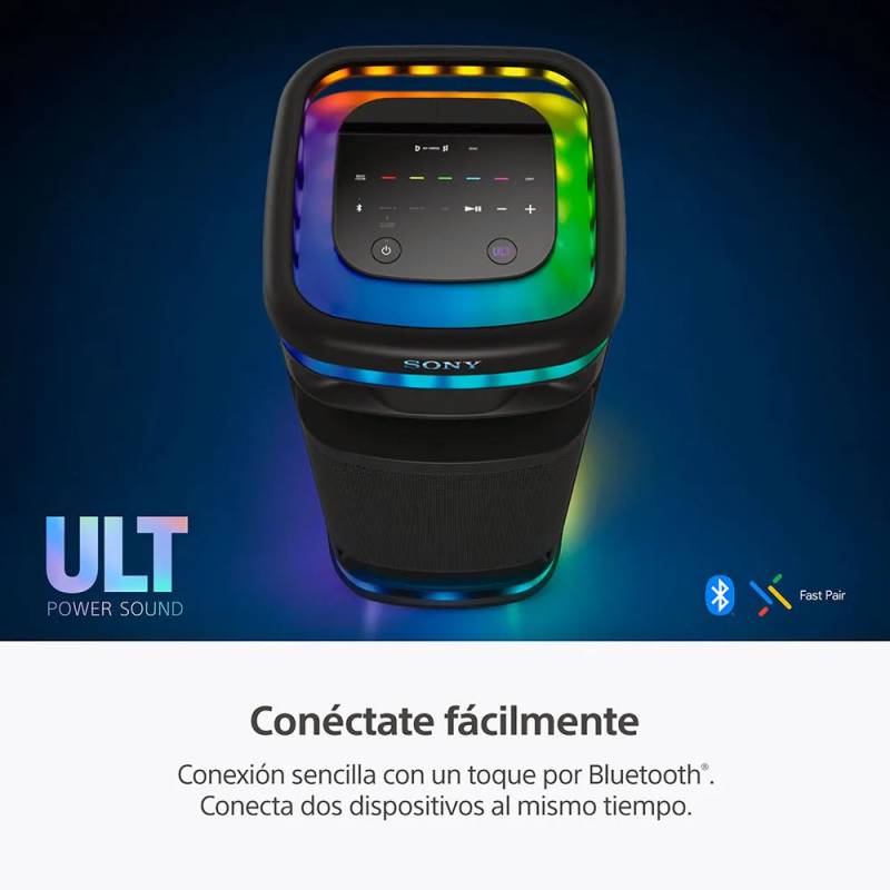 El ULT TOWER 10 incluye un micrófono inalámbrico original de Sony para karaoke y cuenta con controles de eco y teclas en el panel superior, así como entrada adicional para un segundo micrófono o guitarra. También es compatible con la aplicación Fiestable, que permite ajustar efectos de voz, teclas y funciones de iluminación, y con Sony | Music Center para configurar listas de reproducción, optimizar el audio y gestionar Party Connect, con el que es posible enlazar hasta 100 parlantes compatibles.