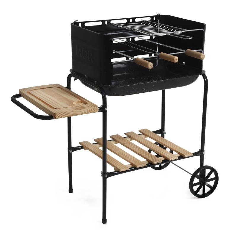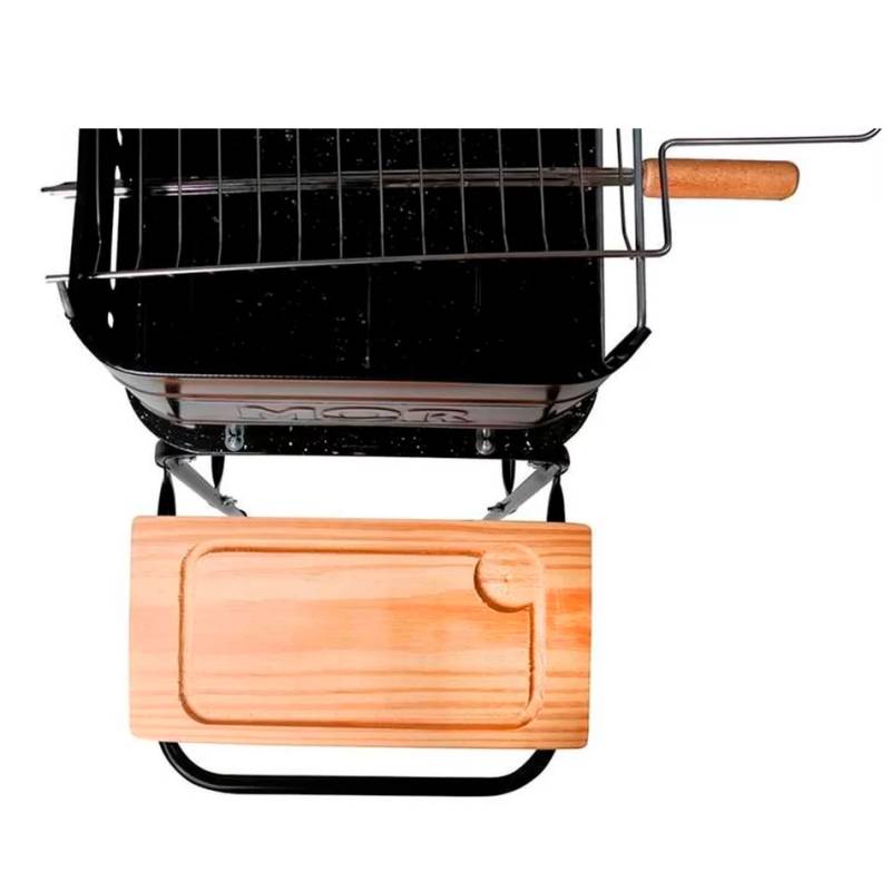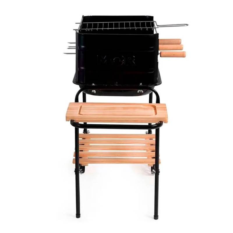 La Parrilla MOR es ideal para reuniones entre amigos. Es desmontable y fácil de trasladar y cuenta con un práctico soporte para utensilios. Su estructura esmaltada absorbe mejor el calor, asegurando una cocción rápida y uniforme y su superficie lisa permite una limpieza mucho más rápida y práctica. También cuenta con ruedas para facilitar el traslado.
