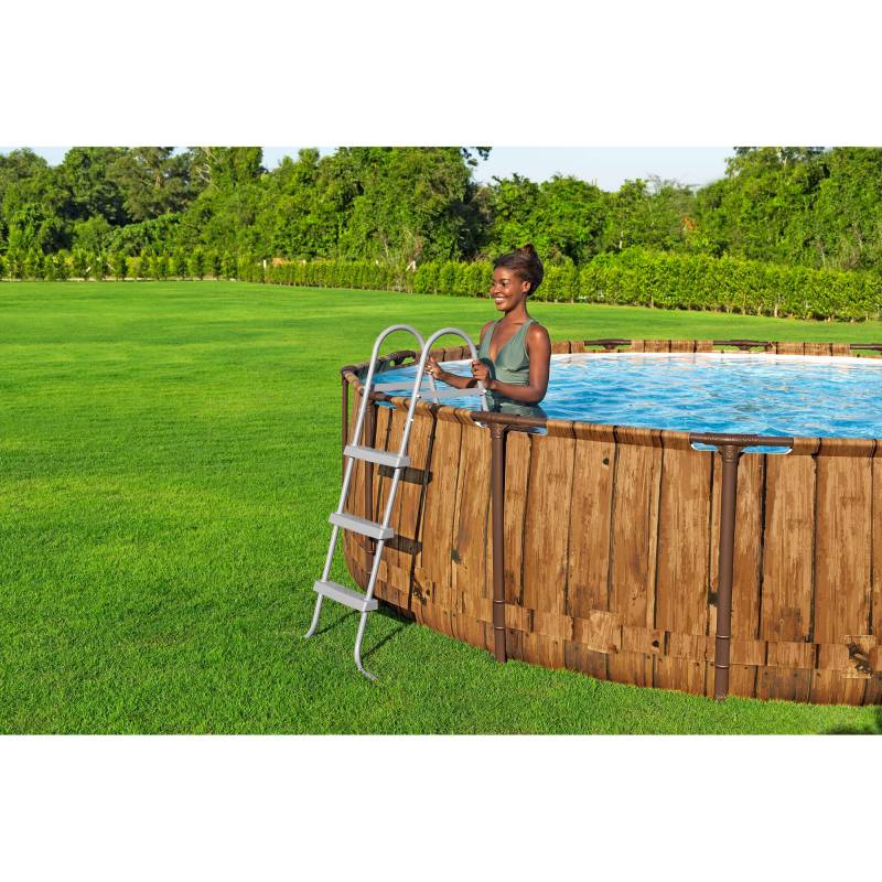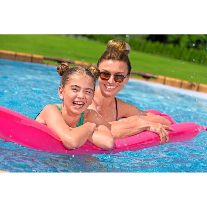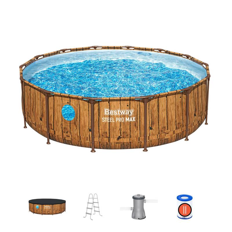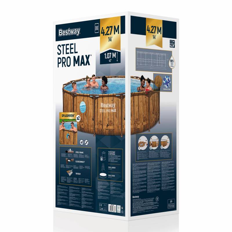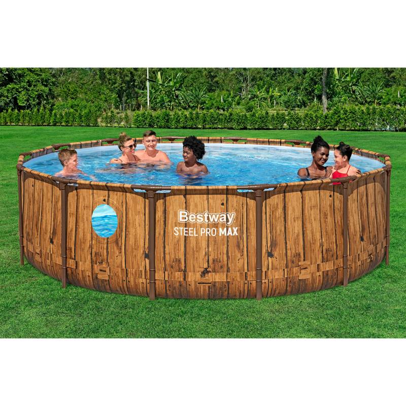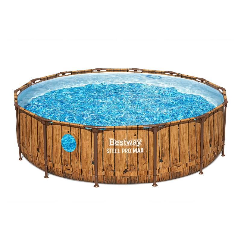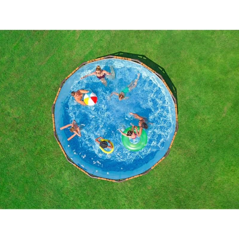 ¡Disfrutar del agua en verano es muy fácil gracias a la piscina sobre superficie Steel Pro MAX™ Splashview™ de Bestway®! Con ventanas reforzadas y fortificadas en los laterales de la piscina, los nadadores pueden saludar y poner caras divertidas mientras nadan. Estas ventanas también permiten a los padres vigilar fácilmente a los niños mientras se sumergen y bucean bajo el agua. La resistente estructura de acero está equipada con juntas ClickConnect™ para garantizar un montaje seguro y fiable. Los conectores de la estructura se conectan de forma sencilla y rápida e impiden el roce de metal contra metal, evitan la corrosión y garantizan la resistencia a la oxidación. El robusto forro Tritech® está fabricado con un material ultraduradero de 3 capas, reforzado para ofrecer solidez y resistencia a los pinchazos. Tritech es un 15 % más resistente al desgarro, un 33 % más resistente al estiramiento y un 83 % más resistente a los pinchazos que el PVC estándar, lo que garantiza que tu piscina durará verano tras verano. Esta atractiva piscina es muy fácil de montar y desmontar para guardarla fuera de temporada. No se necesitan herramientas, y una manguera se conecta a la válvula de control de caudal incorporada para vaciar rápida y fácilmente el agua de la piscina. Esta piscina sobre superficie cuenta con una depuradora de filtro para mantener el agua limpia.