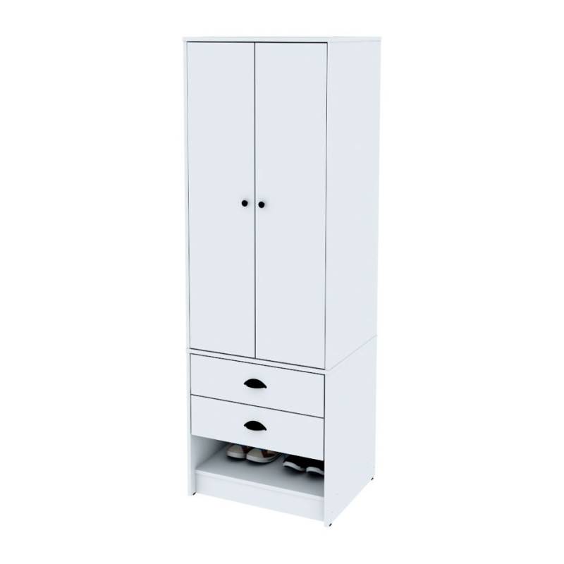 Cuenta con un espacio de perchero, dos cajones y un compartimento inferior para calzados.