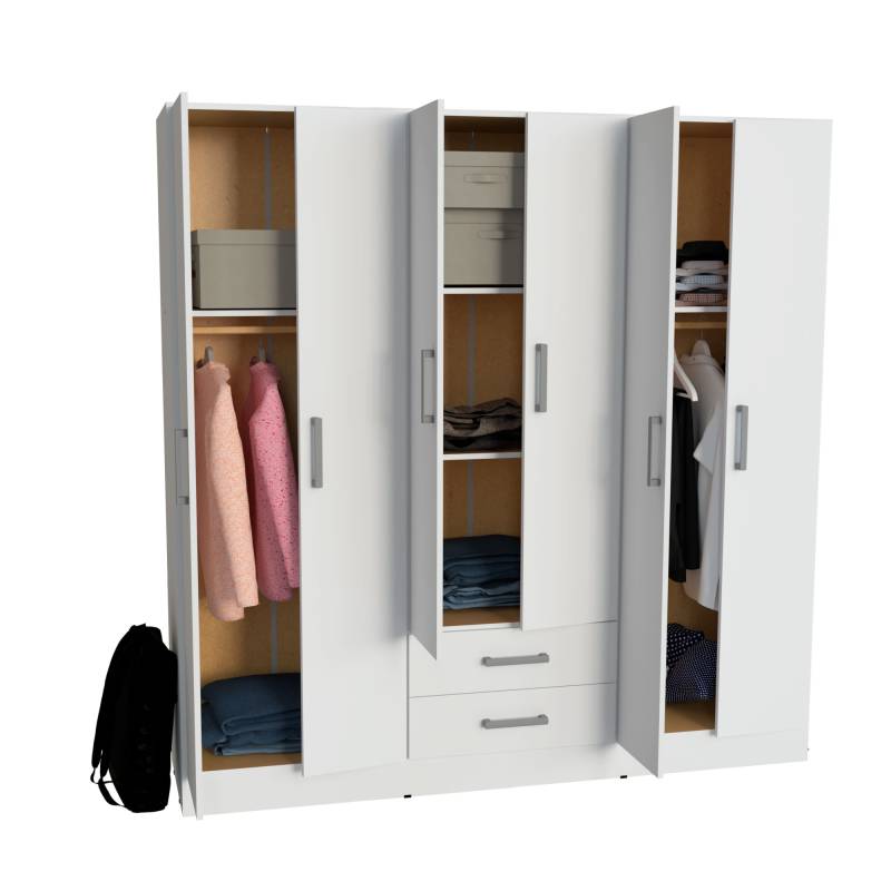 Placard Muebles Orlandi 6 Puertas 2 Cajones Blanco 3502