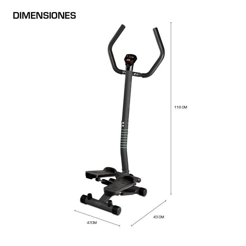 - Dimensiones del Producto: Las dimensiones del stepper son 43x47x118cm, proporcionando una estructura compacta y estable.