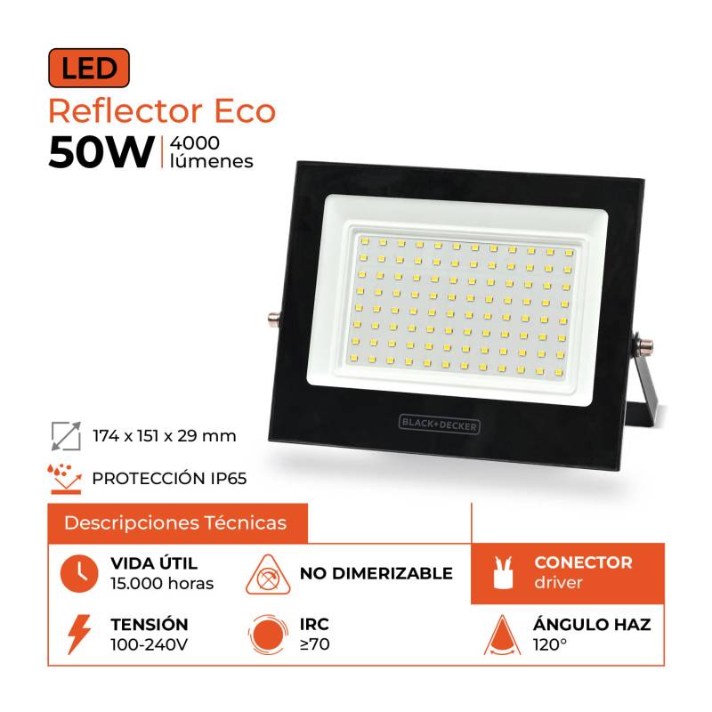 Con 4.000 lúmenes y una vida útil de hasta 15.000 horas, este reflector led de 50W es ideal para clubes, canchas, cocheras o zonas de trabajo. Su eficiencia energética y su diseño compacto lo hacen perfecto para uso continuo en exteriores.
