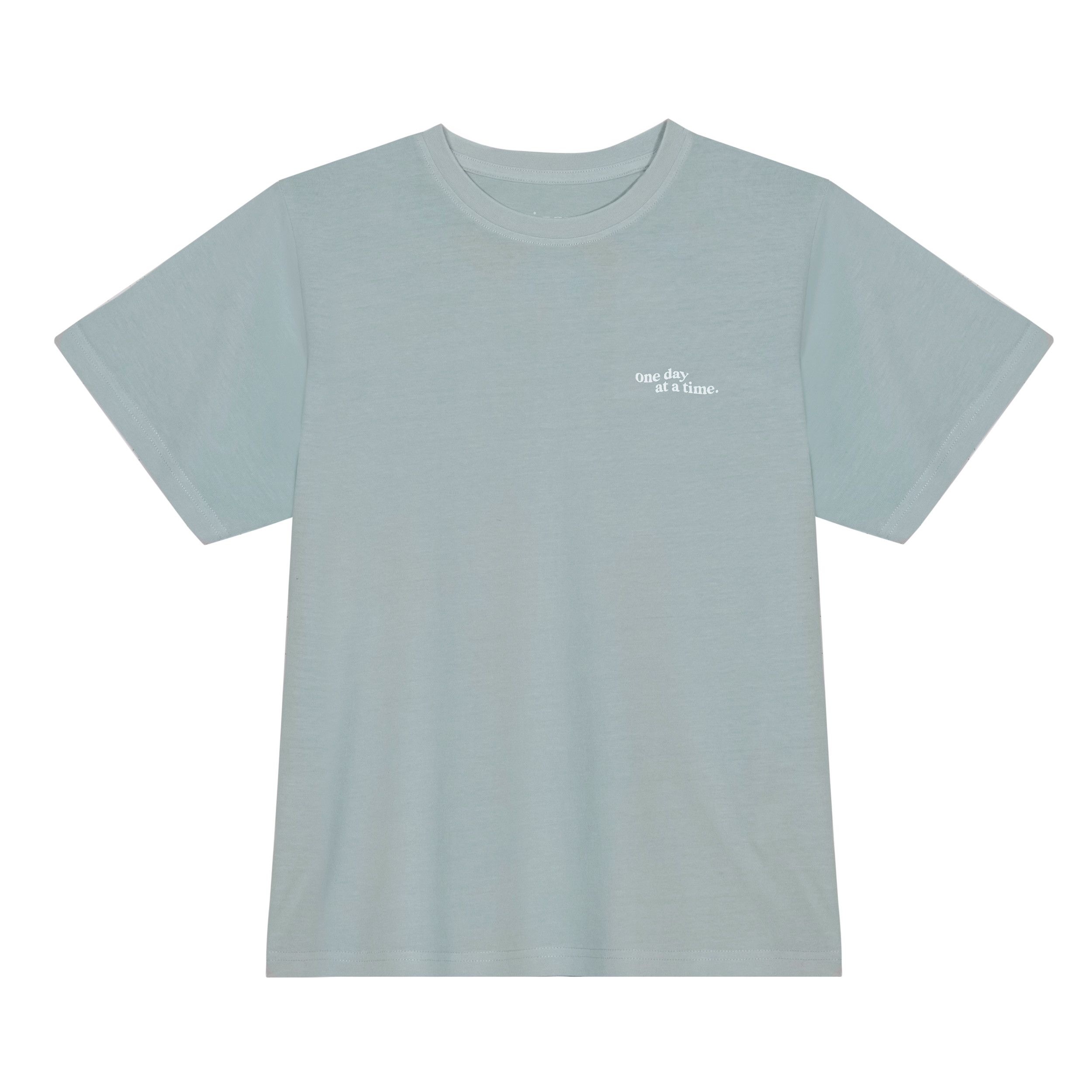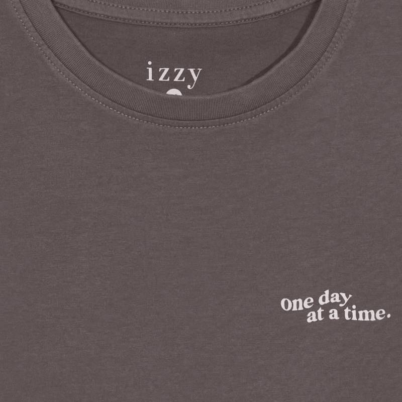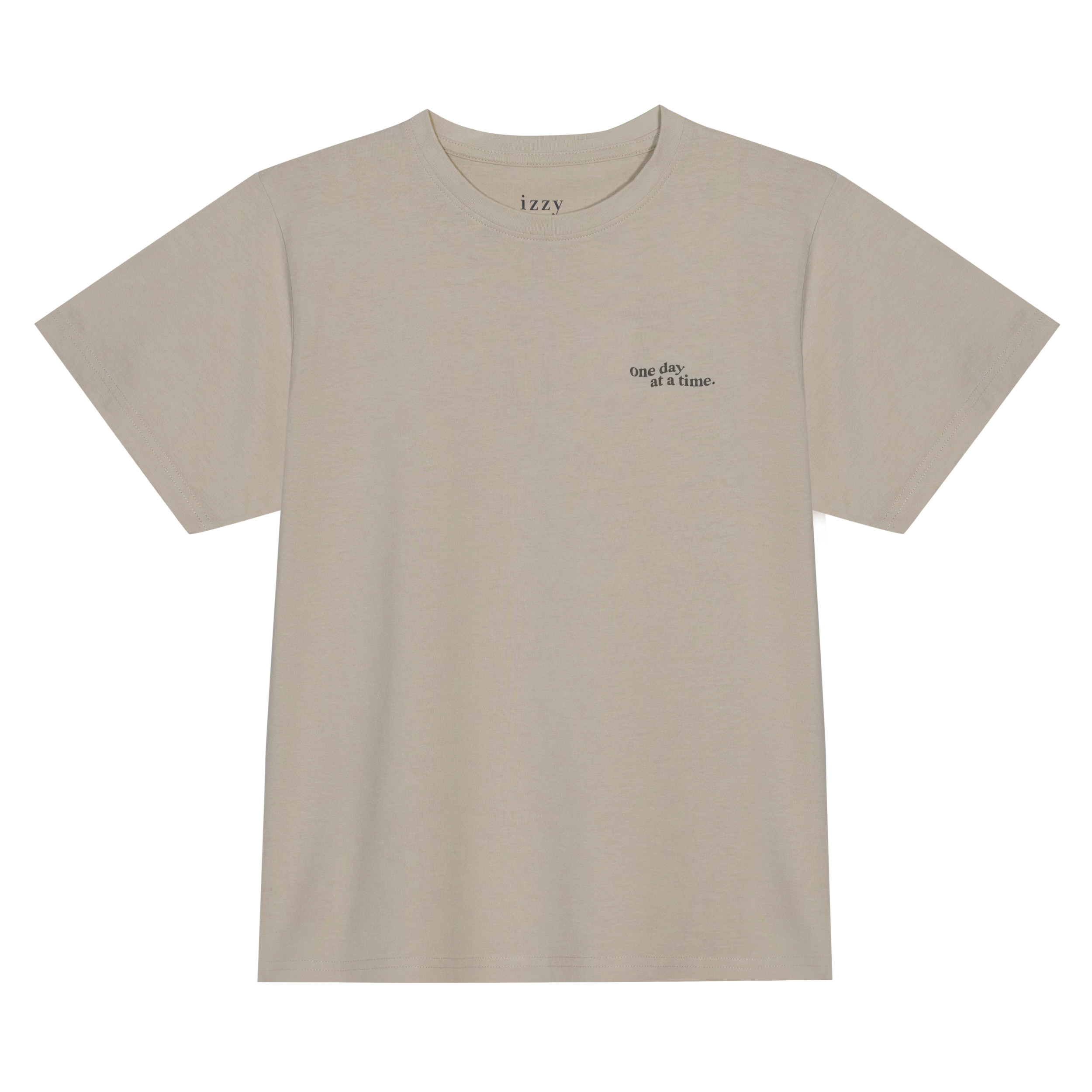 Remera mujer cotton wash manga corta escote redondo 100% algodón con lavado desgastado y estampa en frente