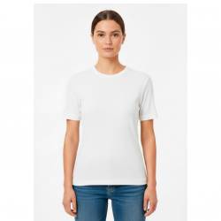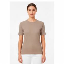 Remera de mujer de calce ajustado, confeccionada en tejido acanalado que aporta textura y elasticidad. Presenta cuello redondo y mangas cortas, con un diseño clásico y versátil ideal para combinar en distintos estilos.