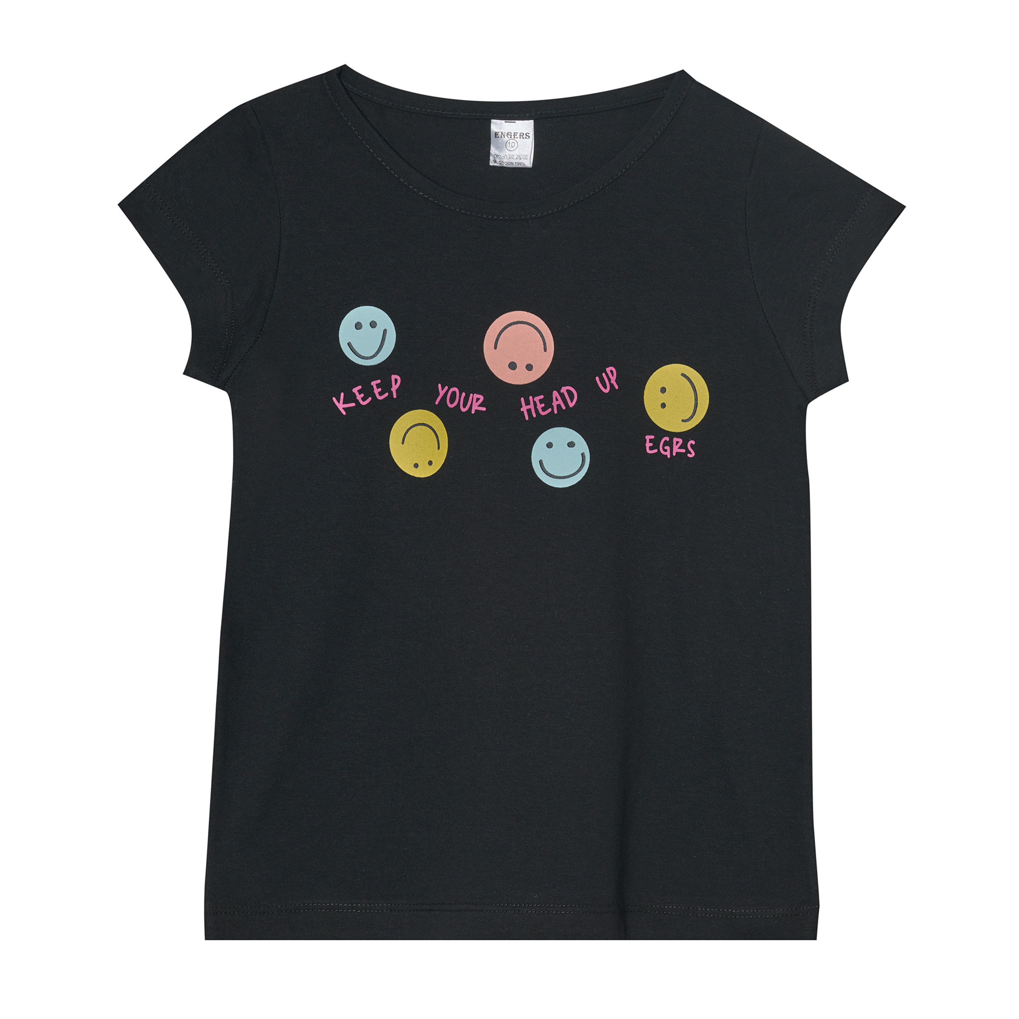 Remera niña manga corta con estampa central, de algodón