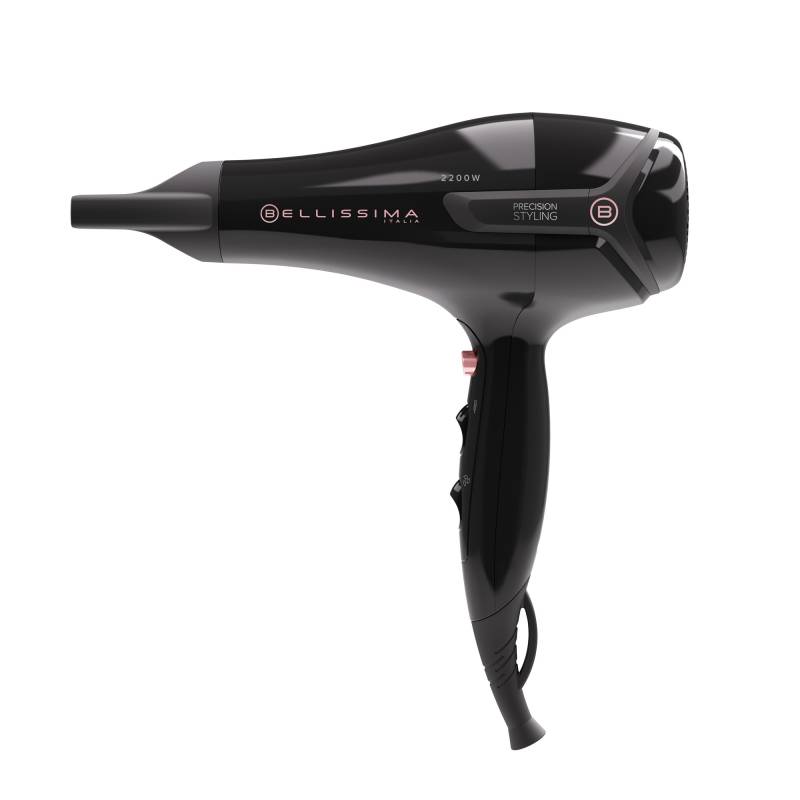 Potencia 2200w, 8 combinaciones de flujo/ temperatura, 2 velocidades, 3 temperaturas, golpe de aire frío, boquilla estrecha orientable, difusor , longitud cable 1,8m, anillo para colgar, tensión 220-240V.