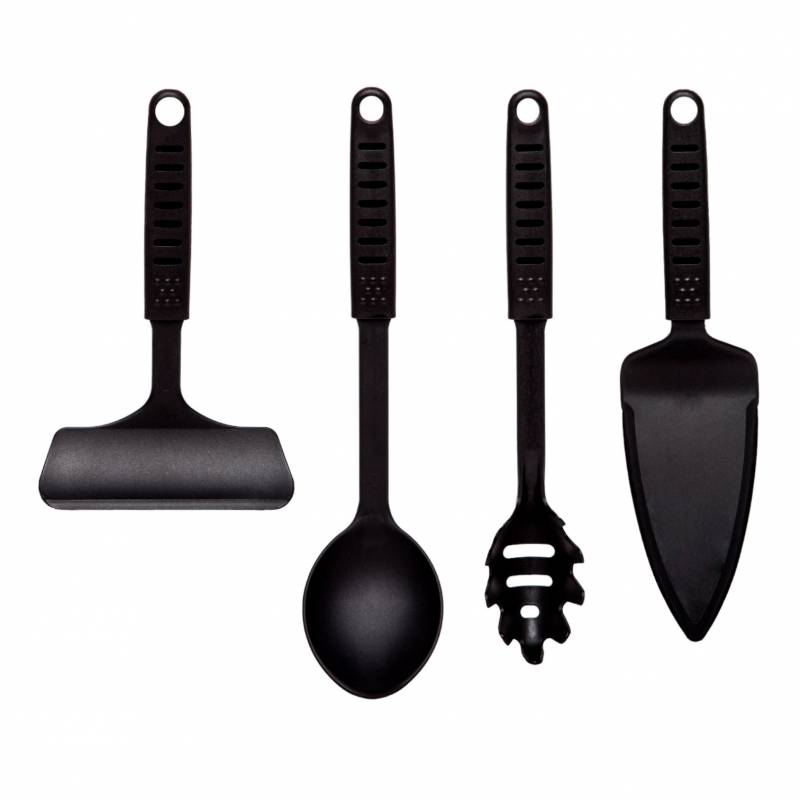 Set de Utensilios de Cocina para Servir, pensado para utilizar sobre cualquier superficie, incluidas las antiadherentes, con un diseño que posee agarres ergonómicos y antideslizantes, permitiendo una mejor utilización del producto. Incluye Porcionera, Cuchara, Servispaguetti y Caneloneras.