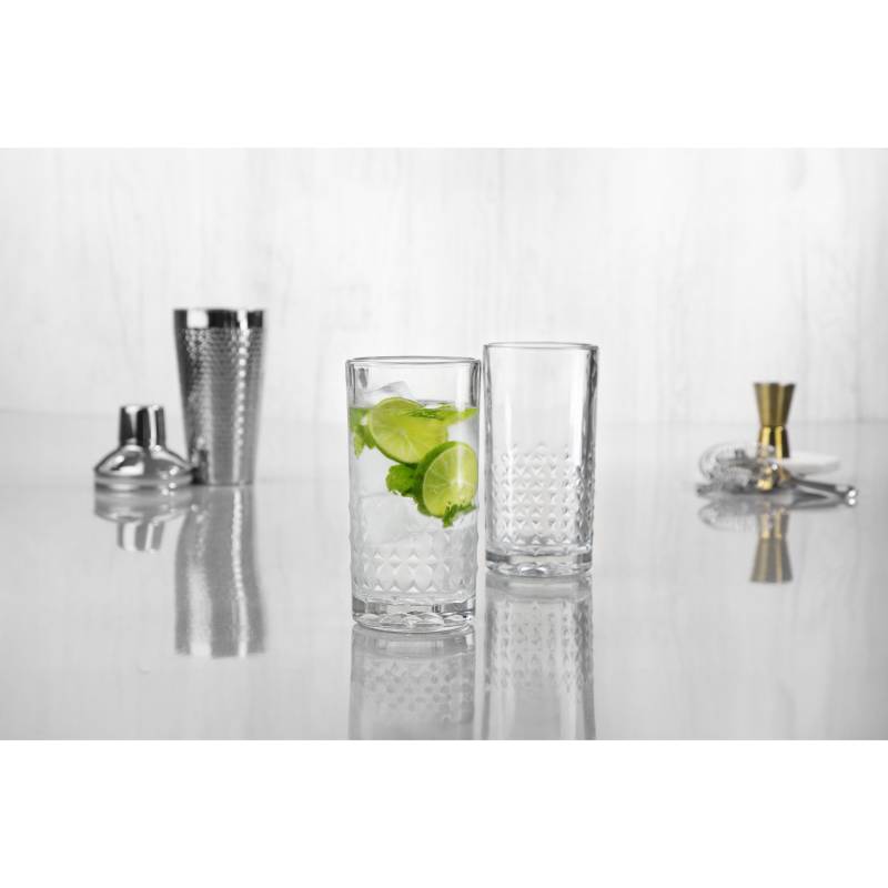 Set de 4 vasos trago largo Oracle con una capacidad de 484 ml (medidas: H 15,24cm ø 7,69cm) c/u. La línea Oracle se caracteriza por su fondo grueso y la textura de sus paredes