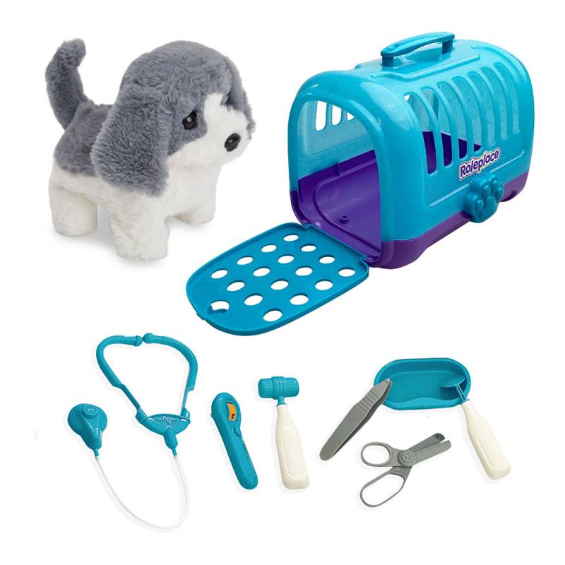 Diviértete con el set veterinaria. Este maravilloso set incluye un adorable perro de peluche, una jaula, stickers y accesorios veterinarios, para que puedas atender a tu nueva mascota. Con movimientos y sonidos, la experiencia será aún más divertida e interactiva. Fomenta la imaginación, el cuidado y la empatía mientras los niños se convierten en pequeños veterinarios. ¡Llévalo a cualquier lugar y diviértete sin límites!