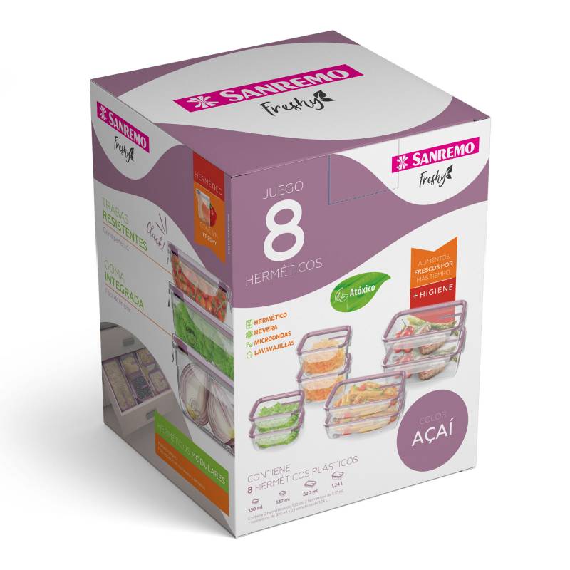 Caja de regalo conteniendo 8 herméticos línea Freshyconteniendo 2 de 0.33 lts, 2 de 0.54 lts, 2 de 0.82 lts y 2 de 1.24 lts