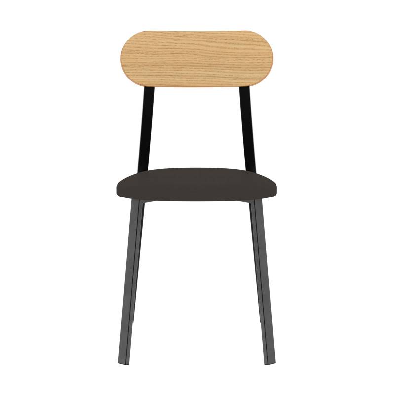 Silla de Comedor Dielfe Negra x4 Unidades La silla Bolonia se distingue por su diseño escandinavo, incorporado por una estructura de caño, un asiento tapizado de calidad y un respaldo de madera de roble. Su versatilidad la hace ideal para una variedad de entornos interiores y armoniza perfectamente con la mesa de la línea Oslo